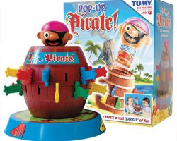 این یک بازی شانسی است که می توانید با آن شانستان را امتحان کنید!بازی دزد دریایی 2 الی 4 نفره است و یک بازی مهیج و مفرح برای کودکان شماست زیرا هر کودکی با دیدن یک دزد دریایی که از بشکه به بیرون می پرد بسیار سرگرم و هیجان زده می شود